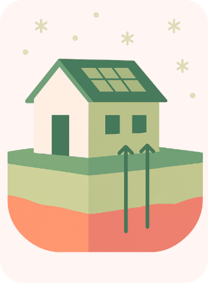 V zimních měsících se využívá teplo, které bylo uloženo do zemního registru během léta. Systém nízkoteplotního vytápění neovlivňuje okolní stavby a poskytuje dostatek energie pro vytápění objektu. Teplo je odebíráno přímo z uložených zásob a zajišťuje komfortní teplotu v budově.